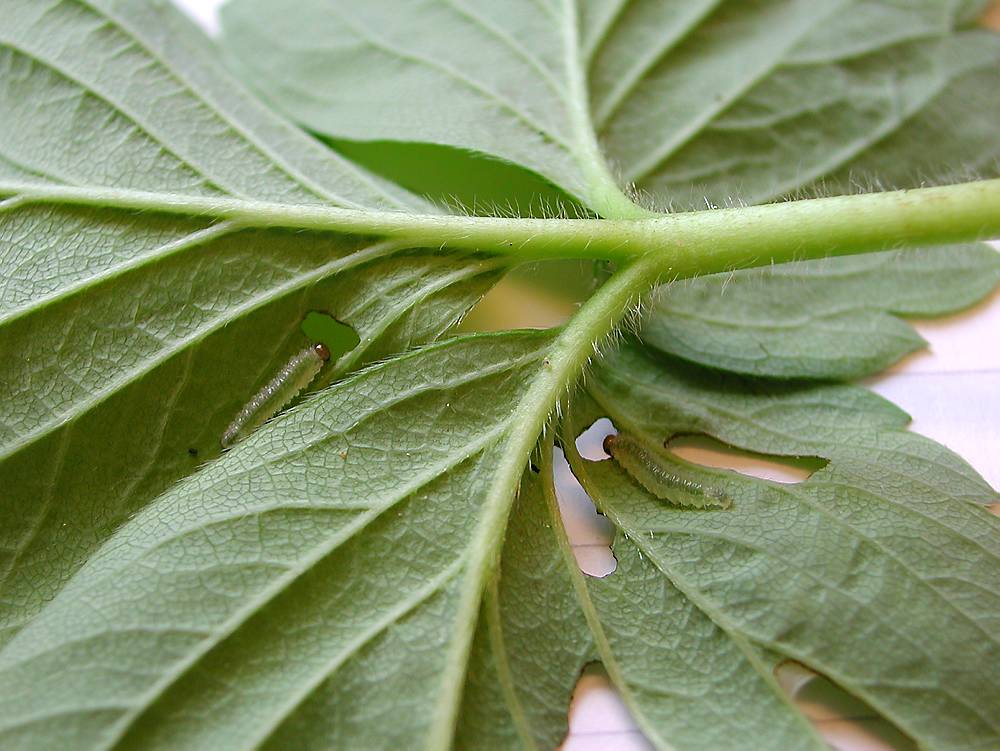 Bladvepslarver på jordbærblad (Foto: N. Trandem. NIBIO)