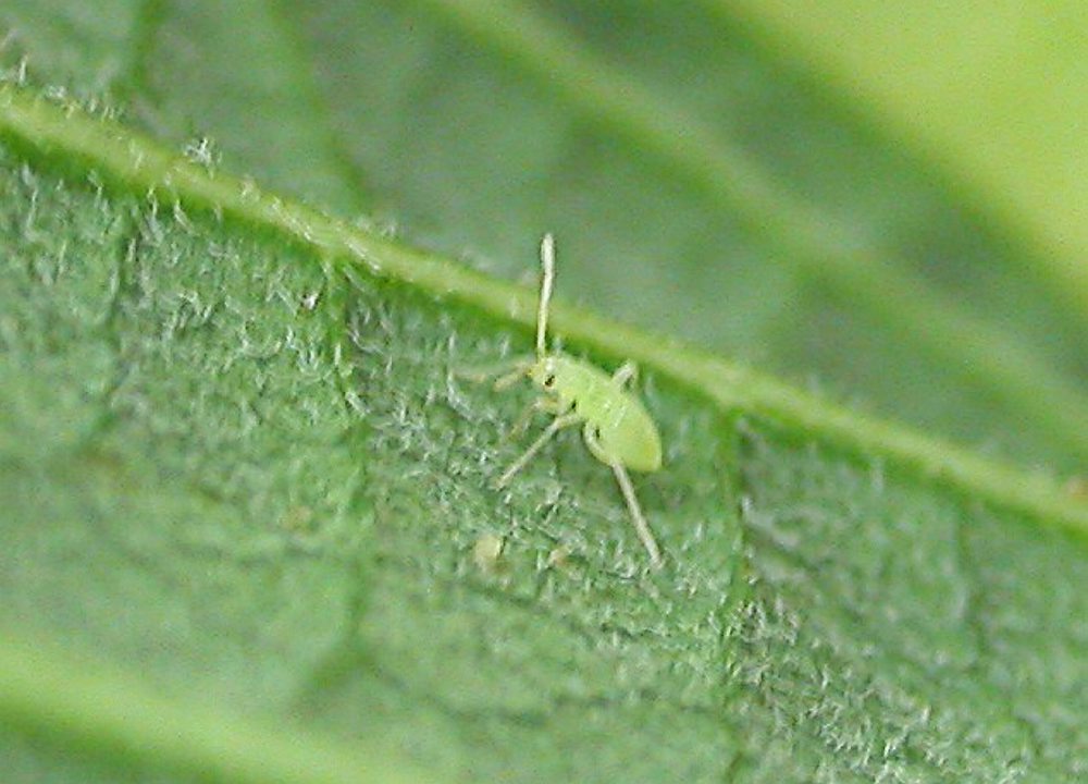 Nymfe av bladtege (Macrolophus pygmaeus). (Foto: A. Sundbye, NIBIO)