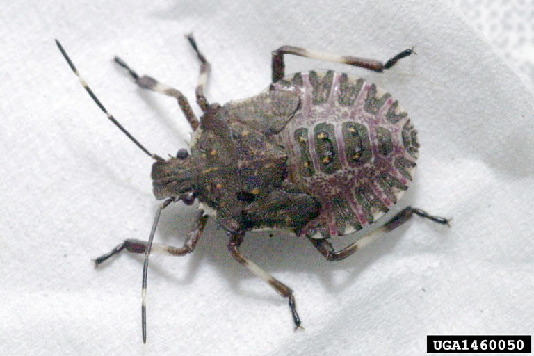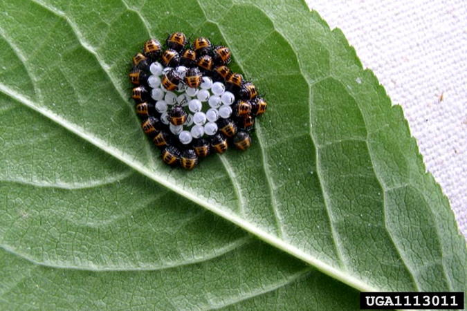 Brunmarmorert breitege, egg og nyklekkede nymfer (Gary Bernon, USDA, Bugwood.org)