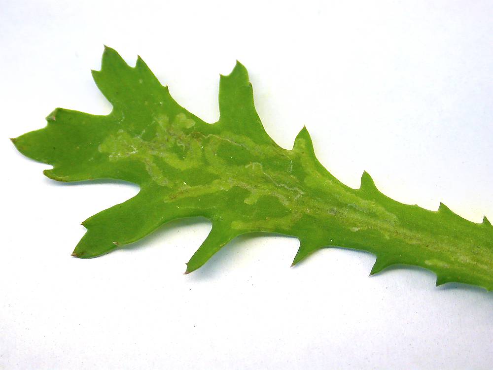 Margerittblad med miner av sørmarikansk minerflue (Foto: D.-R. Blystad NIBIO)